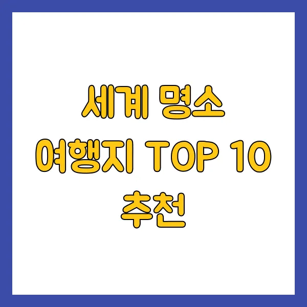 자, 이렇게 10곳의 세계적인 명소들을 함께 둘러봤는데 어떠셨나요? 각 장소가 품고 있는 이야기와 풍경을 상상하는 것만으로도 벌써 마음이 붕 뜨는 것 같아요.