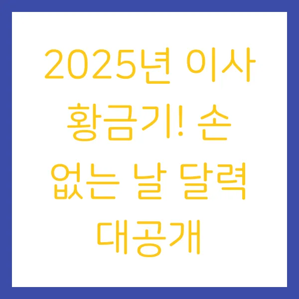 - 평일 '손 없는 날'을 공략하세요! 주말보다는 평일 손 없는 날이 그나마 예약이 수월하고 비용도 10~20%가량 저렴해요. 연차를 쓸 수 있다면 평일을 노리는 것이 가장 현실적인 절약 방법입니다.